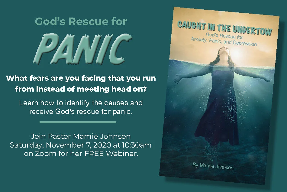 In Pastor Mamie Johnson’s new book, Caught in the Undertow: God’s Rescue for Anxiety, Panic and Depression, she takes an in-depth look at panic. To order your copy of her new book, click on the book title; she will be sharing from her new book during the webinar to help you better understand panic and receive God’s rescue.